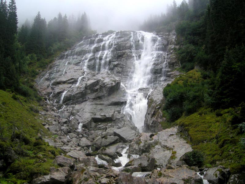 Als die Gruppe in den Bergwald eintaucht, haben sich Nebel und Regen verzogen. So bestaunen die Watzmänner kurz darauf den Grawawasserfall. Über mehr als 100 Höhenmeter stürzen hier die Wassermassen über Felsenklippen zu Tal. An der Grawaalm im Puetzbachtal endet die gelungene Bergwanderung des Wanderjahres 2009 über den Stubaier Höhenweg. Im Hotel verabschiedet der Greffelcheswatzmann Konrad Friedgen die beiden Bergführer Christian Treimer und Alexander Scherl. Er dankt ihnen für die gute Planung und Durchführung des großartigen Bergwanderevents.